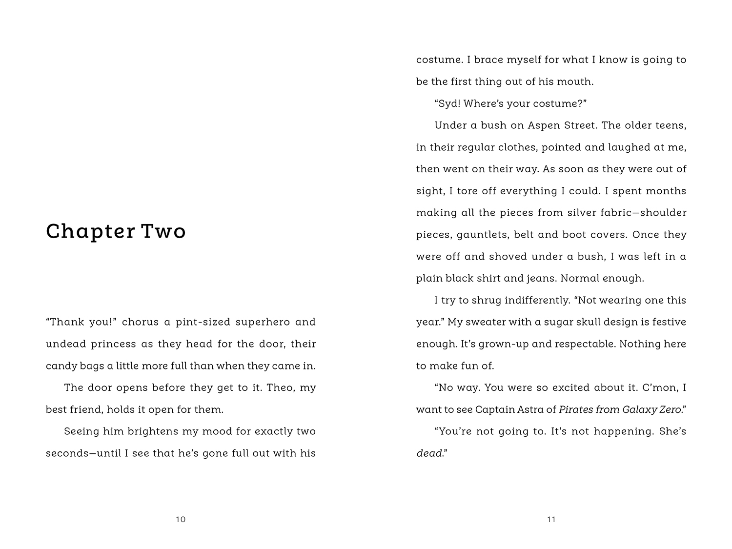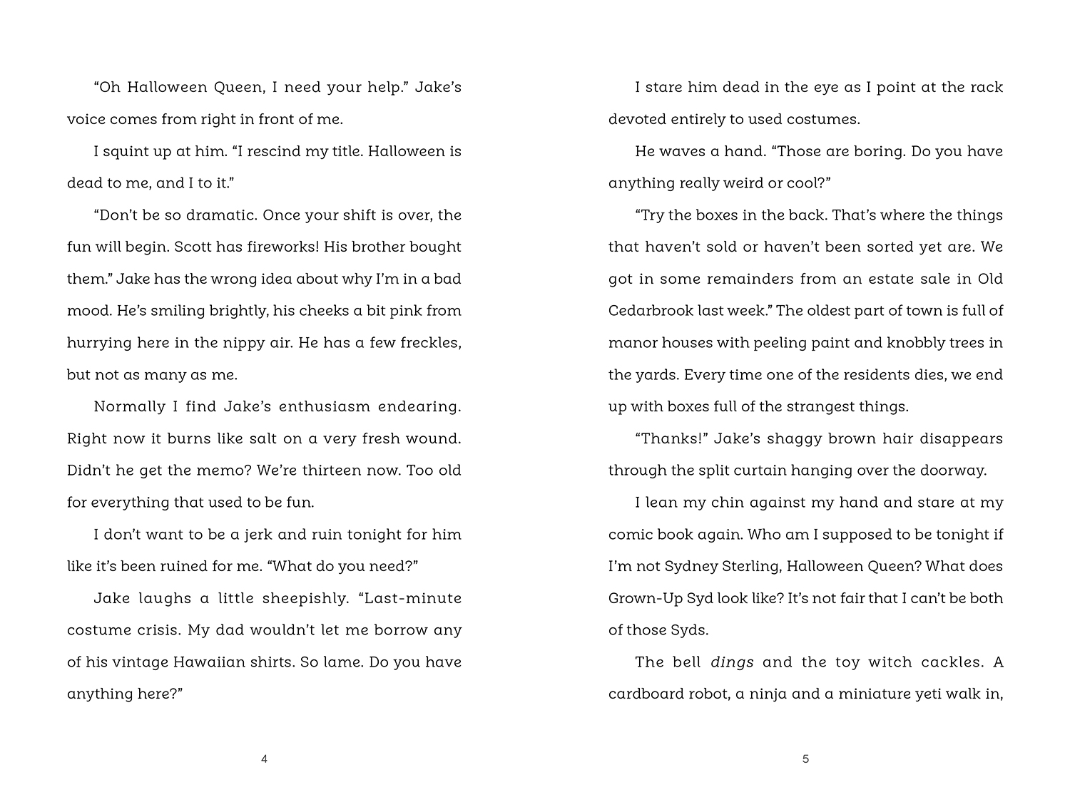 Halloween is thirteen-year-old Syd’s favorite night of the year, but when she gets teased by older kids about her costume, she decides to sit this one out.
