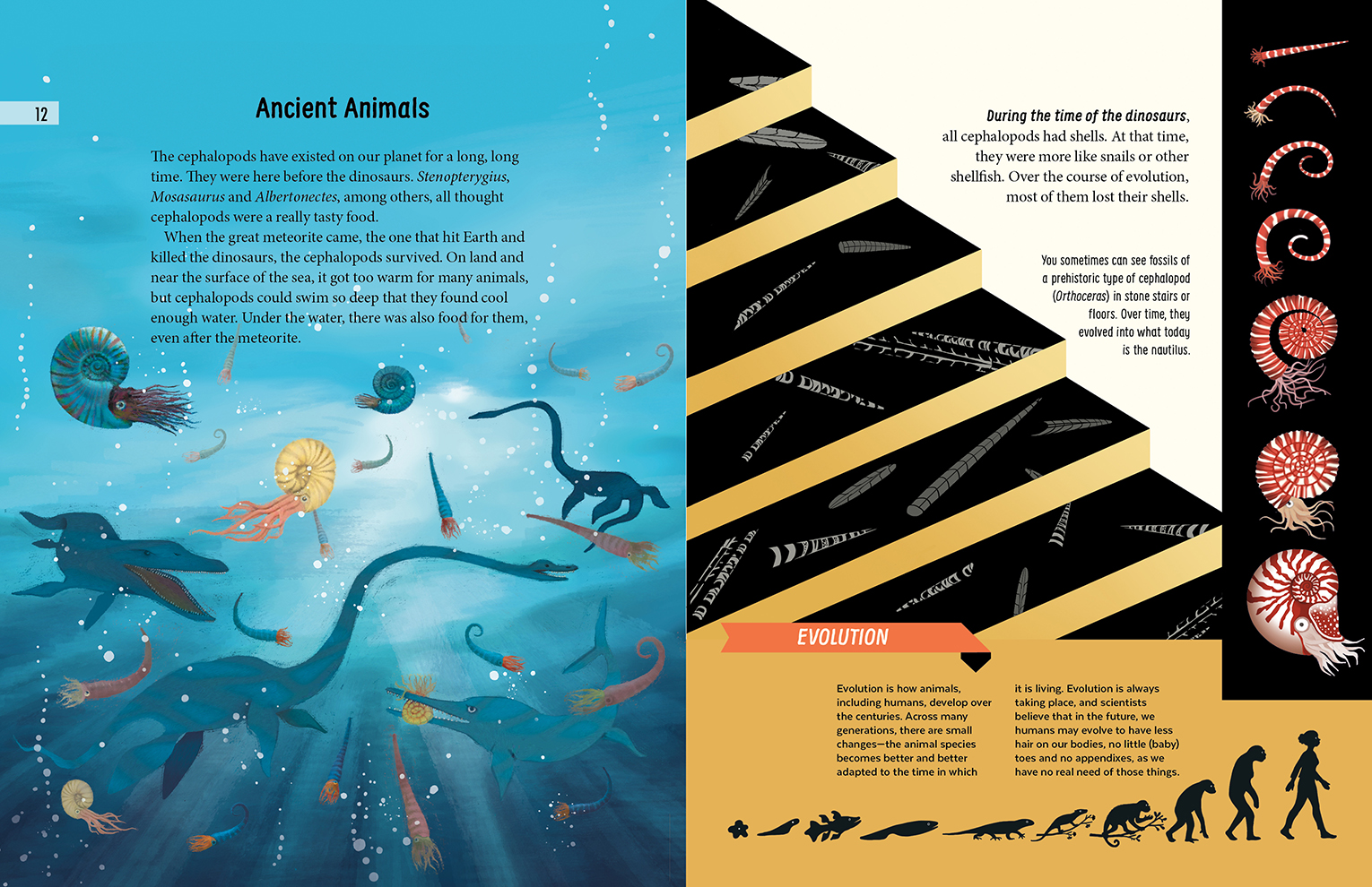 Cephalopods include octopuses, squids, cuttlefish and nautiluses. These incredible and strange creatures that live deep in the sea have fascinated people for centuries. They have developed amazing abilities to help them survive, like squeezing through the smallest of openings, regrowing limbs, camouflaging with their surroundings in the blink of an eye and shooting dark ink into the faces of their enemies.