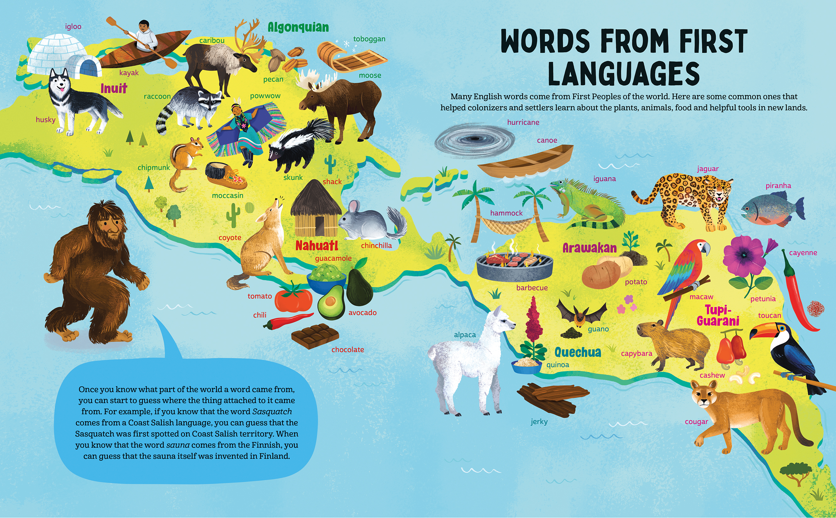 “A starter kit for young etymologists. Questions addressed to readers will elicit active engagement. McLaughlin’s lineless, slightly simplified but realistically detailed color cartoons against flat backgrounds allows the worlds to shine. An appealing and enlightening examination of the gallimaufry that is English.”