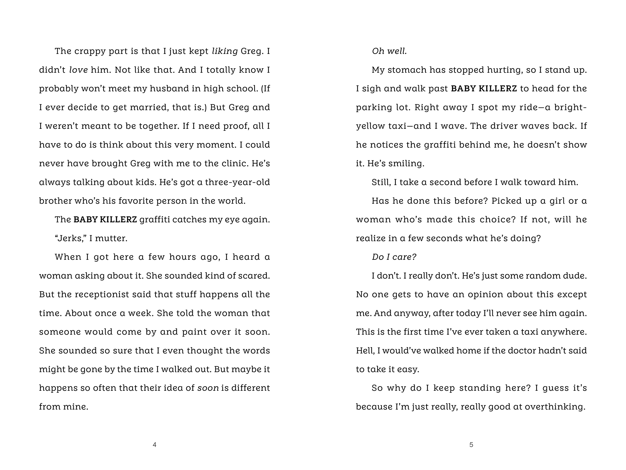 She doesn’t regret it. But when she walks out of the clinic, she’s seen by a classmate and her whole life changes. Before she can even get back to school, everyone knows what she did. Her freshly ex-boyfriend is furious. Her best friend avoids her. The only person who doesn’t seem to care is Dane, the new boy at school, who sees her as a person and knows her choices are none of his business. But then a rumor sweeps through the school that Maura was the victim of an assault and everyone is suddenly on her side. Maura knows she doesn't owe anyone an explanation, but how will she get it all to stop?