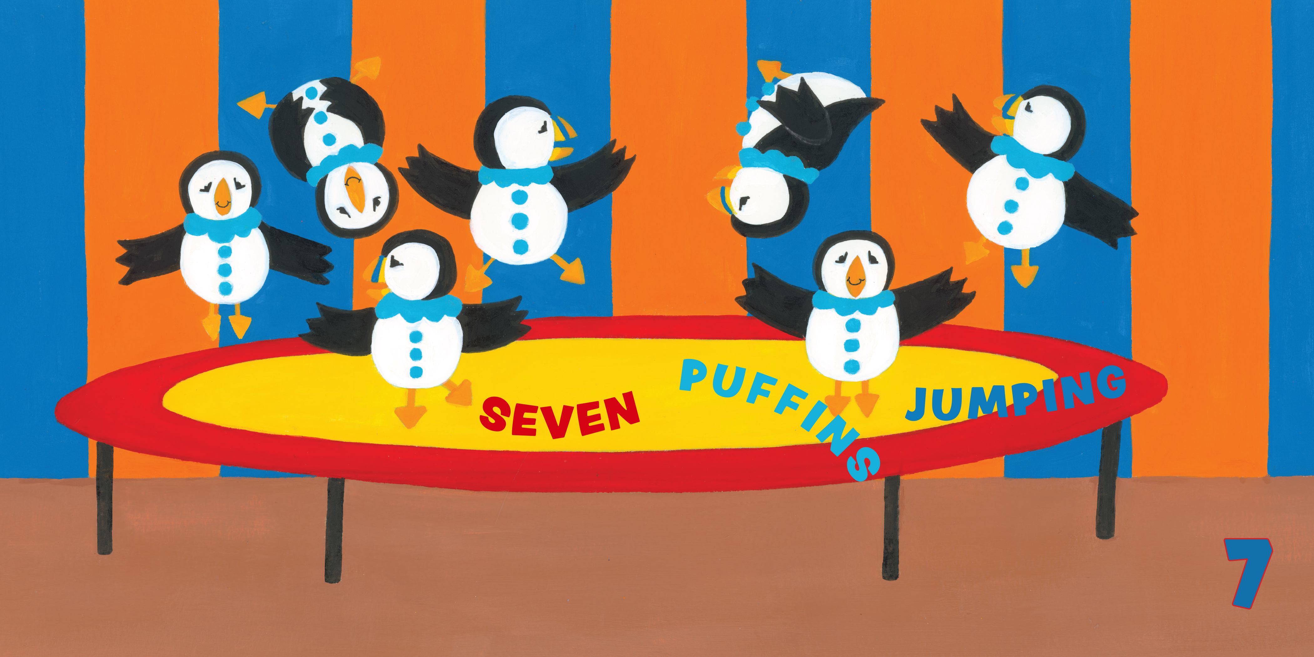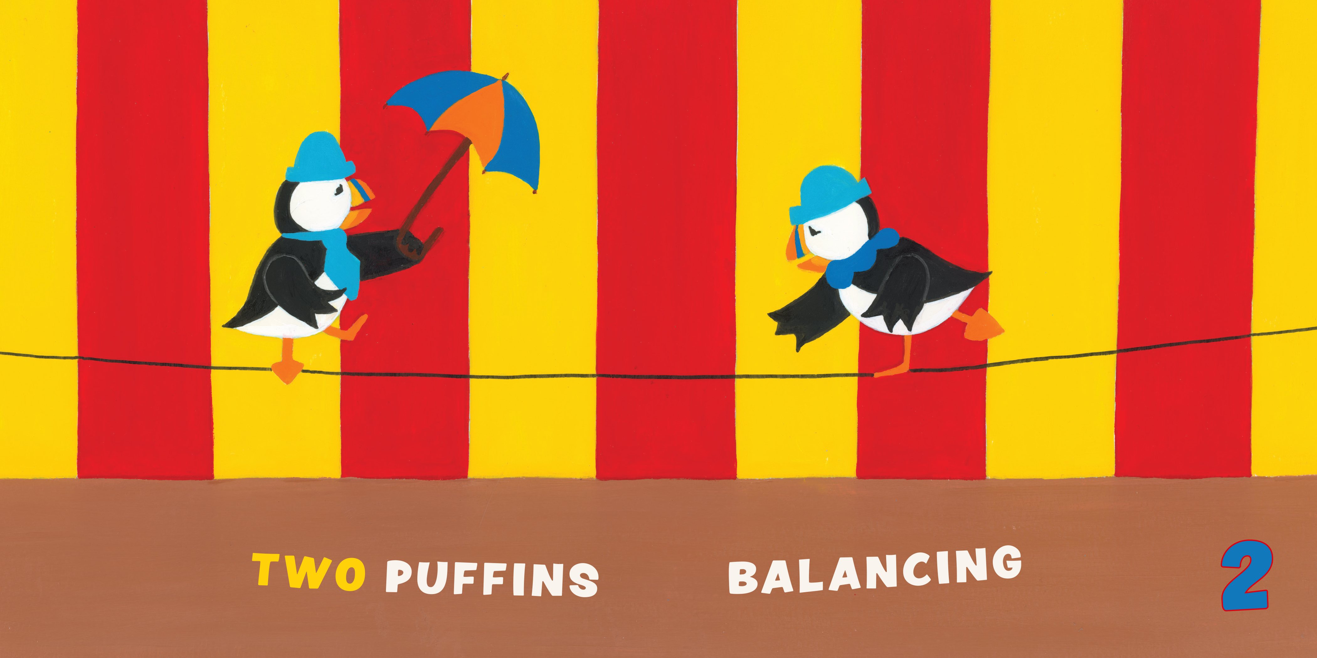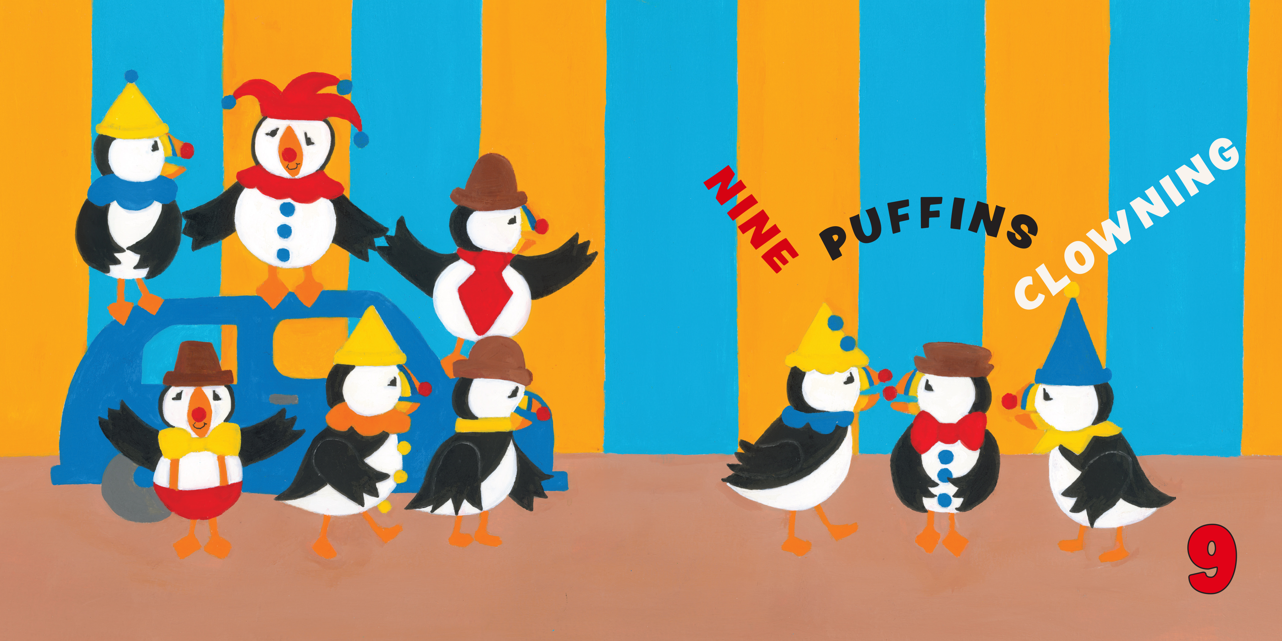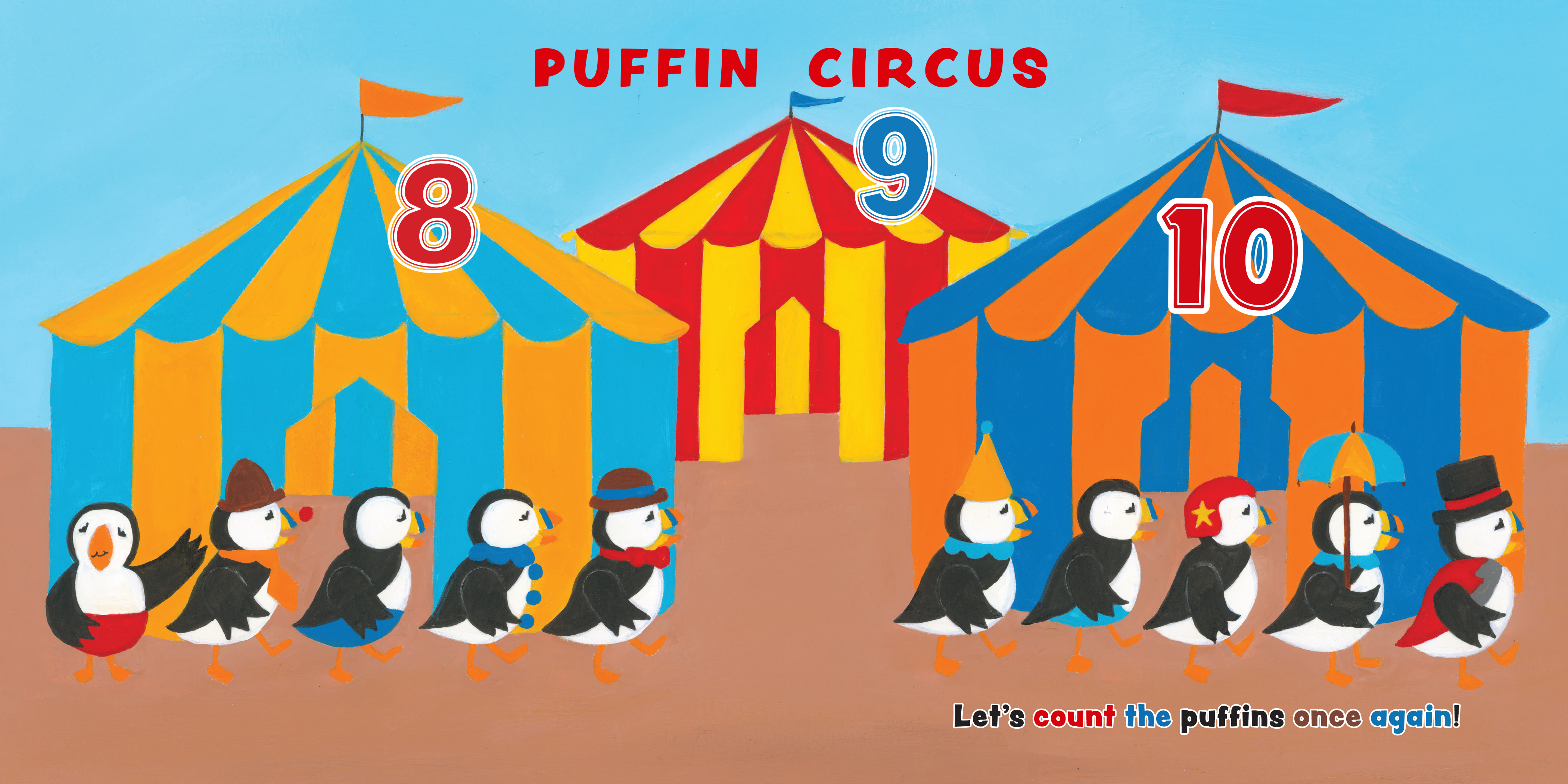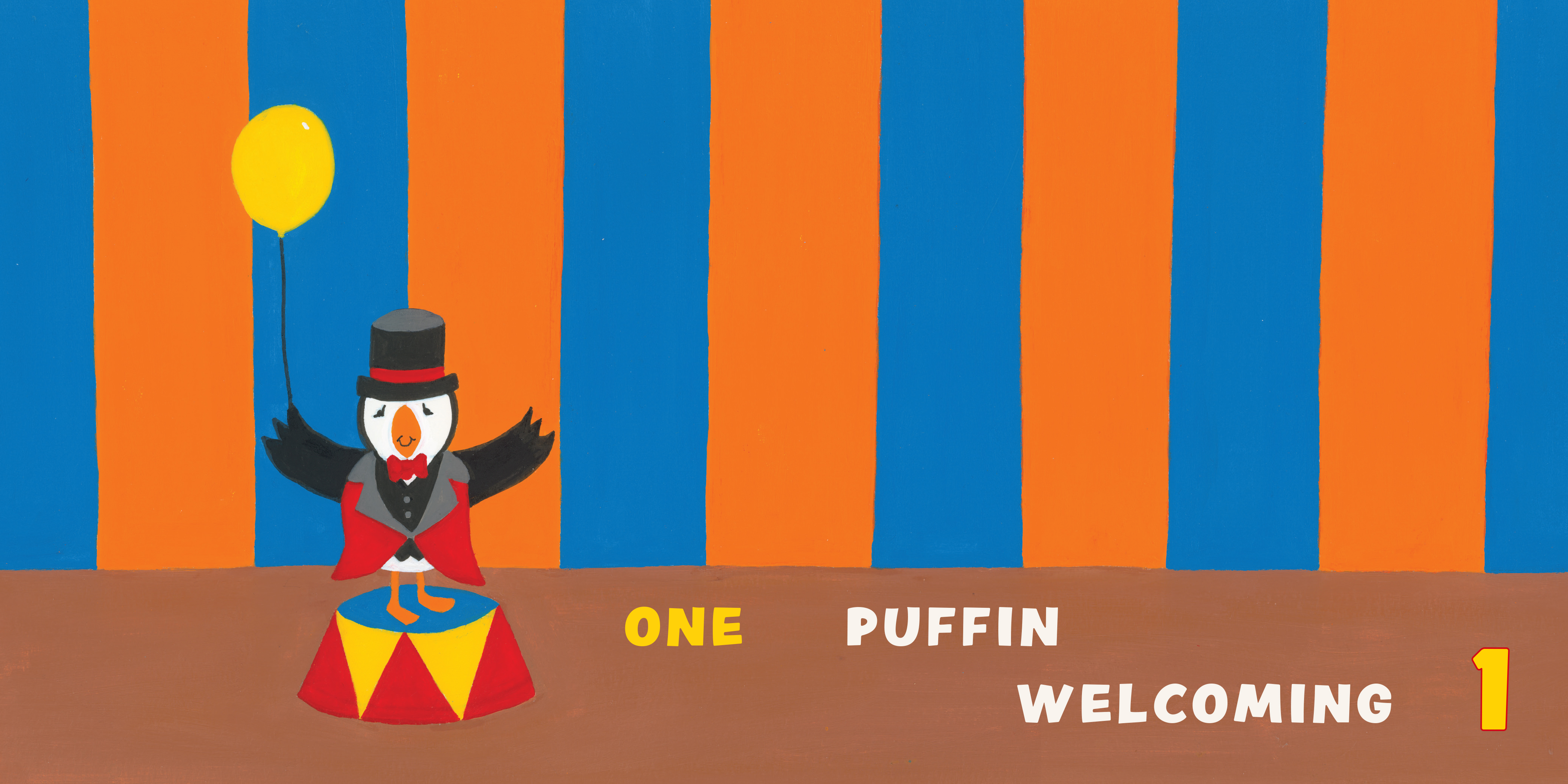 "Puffin Circus 1 2 3, how many puffins do you see?"